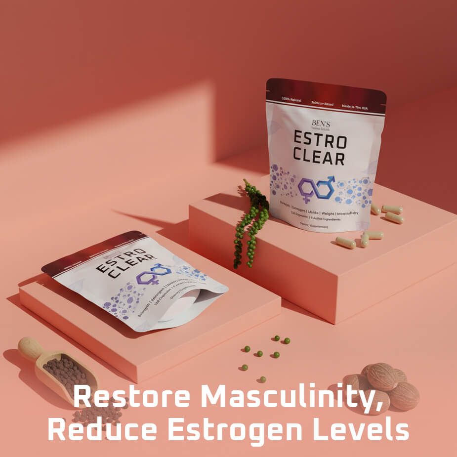 Multiple double-blind studies have shown that the ingredients in Estro Clear naturally purges excess estrogen from the body and helps restore natural testosterone levels.