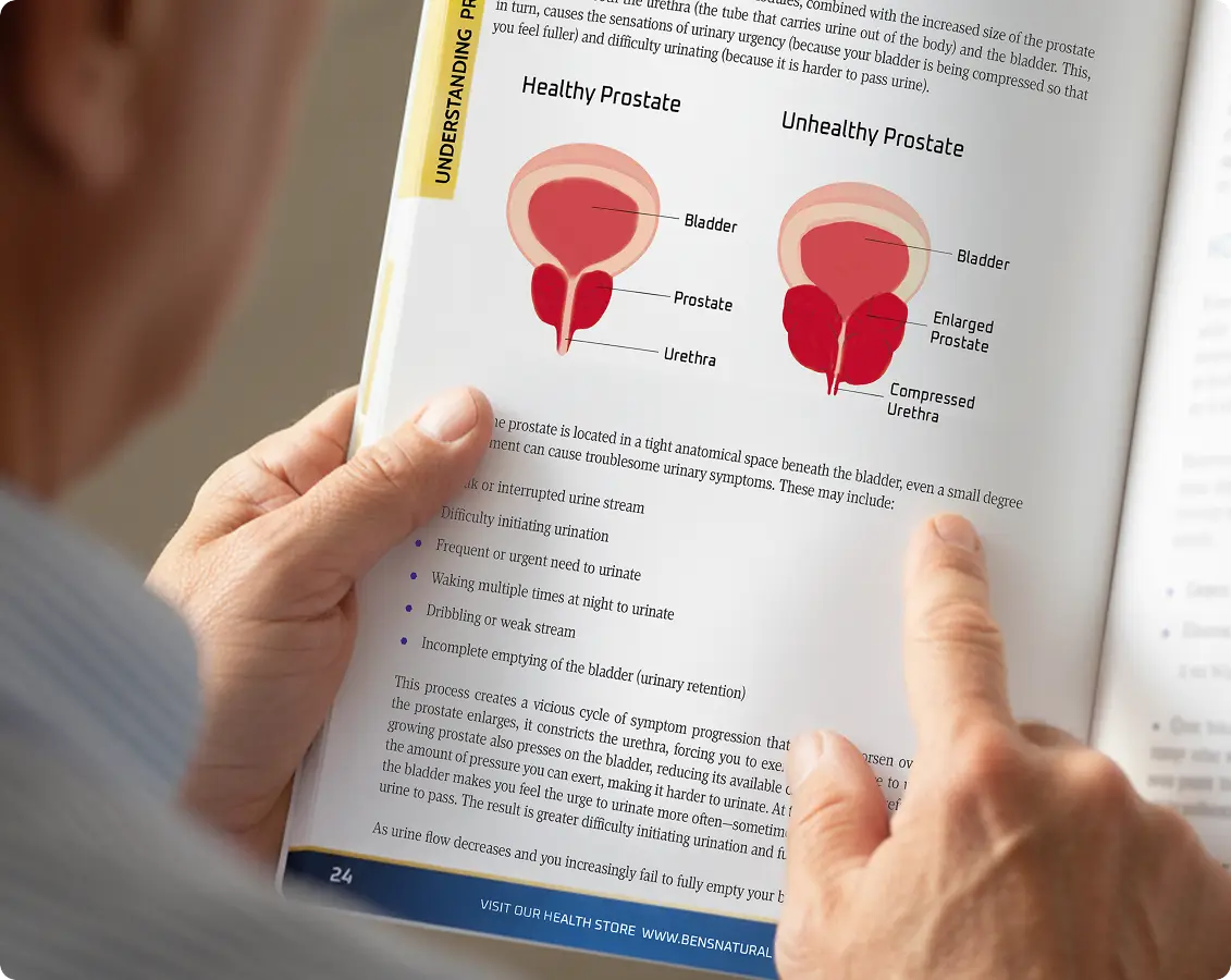 You’ll learn how to lower inflammation, reduce PSA, improve urinary flow, and regain urinary control, without the risks that come with pharmaceuticals or surgery.