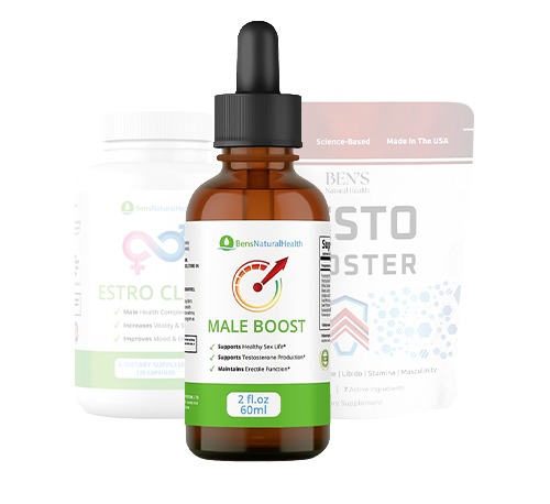 The three powerful natural supplements that are included in the program are Testo Booster, Estro Clear and Male Boost. They combine to address all aspects of male sexual health, working fast to restore optimal erectile function, libido and endurance without drugs, surgery or side effects.